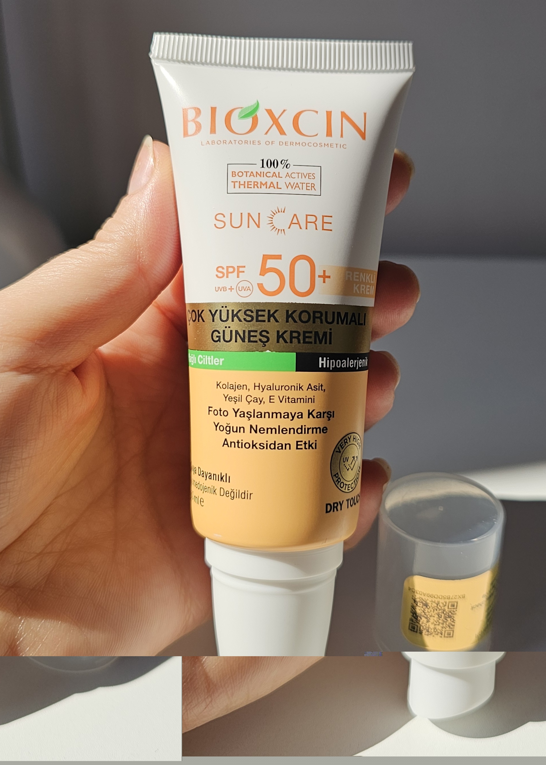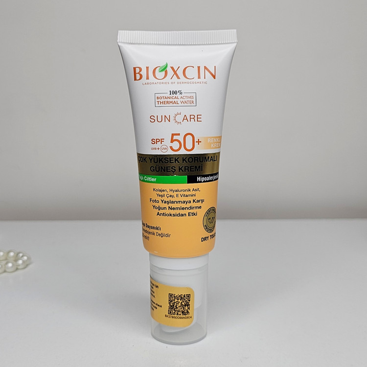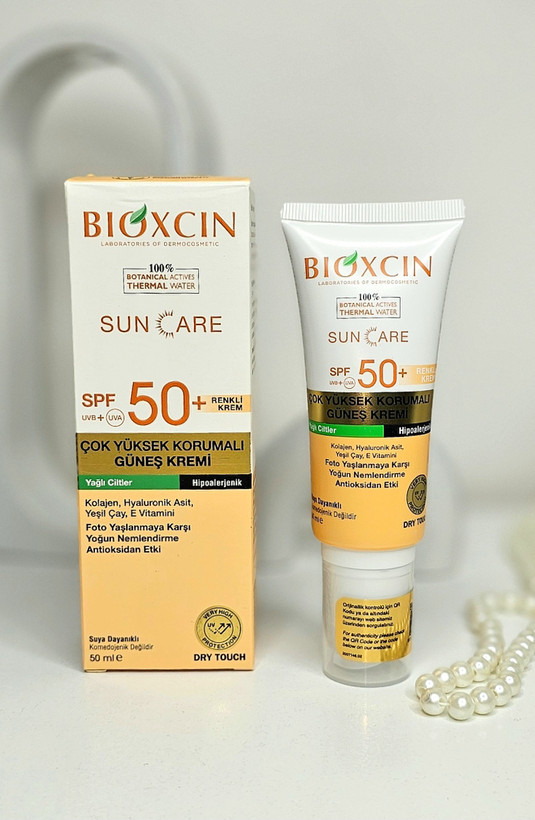ضد آفتاب رنگی بیوکسین پوست چرب حاوی هیالورونیک اسید و کلاژن است و رطوبت از دست رفته پوست را تامین کرده و از چروک پوست جلوگیری می کند. همچنین با فرمول حاوی عصاره چای سبز و ویتامین E، به مراقبت از پوست در برابر اشعه ی یو وی و پیری پوست کمک می کند. اثرات آنتی اکسیدانی این محصول و محتوای غنی روی و سیلیکون خود پوست را نرم، لطیف و مرطوب میکند. از دیگر مزایای که این ضدآفتاب دارد این است که با پوست سازگاری دارد و پس از استفاده هیچگونه التهابی ایجاد نمی شود.یه کاورخیلی طبیعی وملایم مثل تینت به پوست میده وپوست وشاداب وشفاف نشون میده.بافتشم روی پوست خیلی سبکه اصلاحس سنگینی به پوست نمیده.