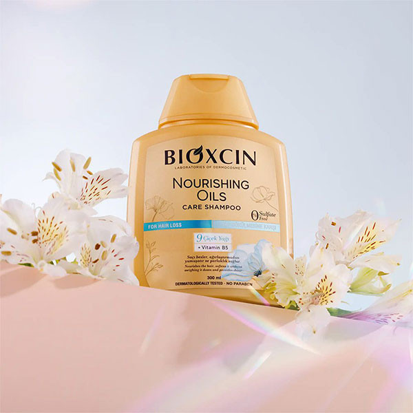 شامپو ضد ریزش حاوی 9 روغن مغذی بیوکسین Bioxcin Nourishing Oils Shampoo 9 Flower Oil 300Ml