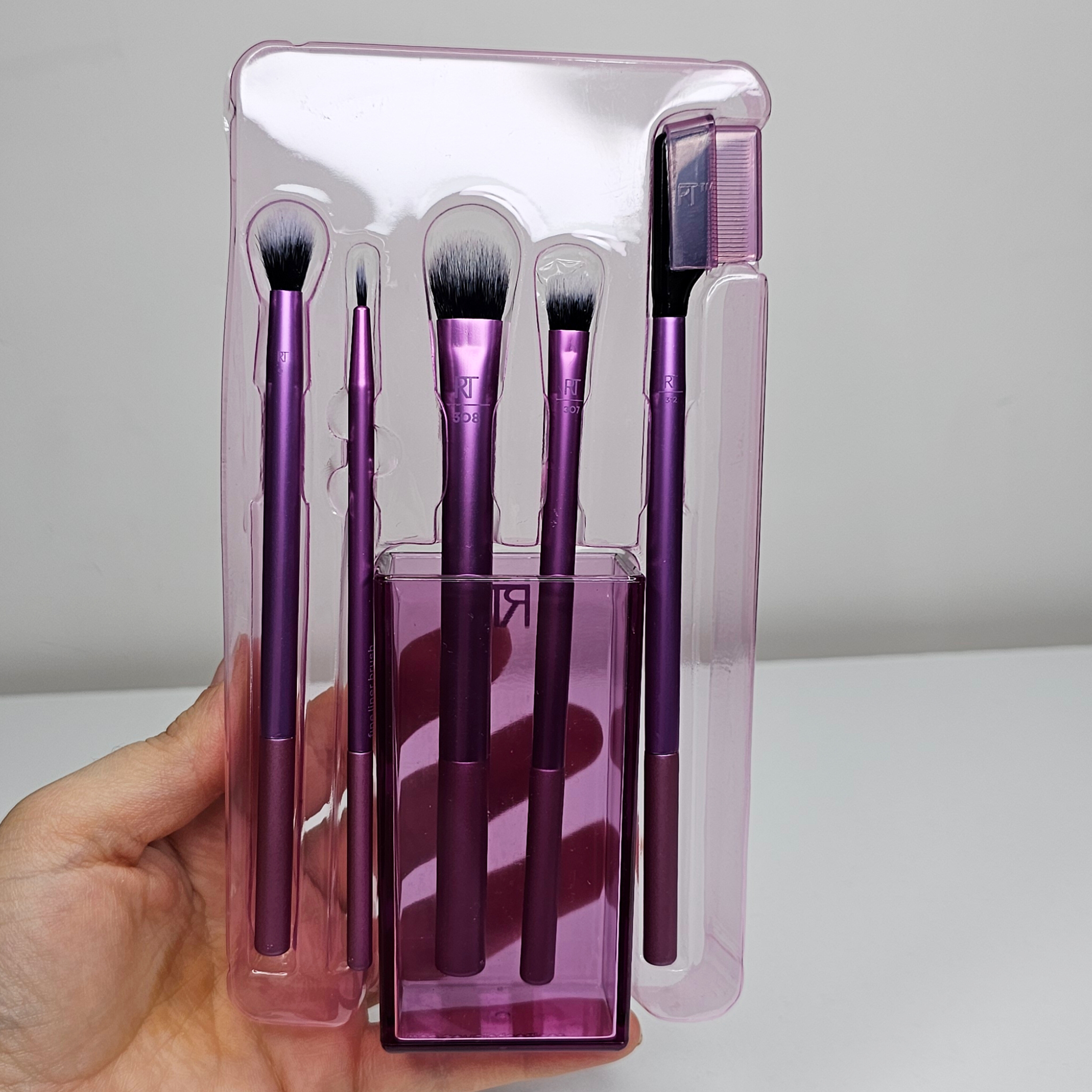 به کمک ست براش چشم ابرو استند دار ریل تکنیک هم می توانید سایه چشم خود را بزنید، هم خط چشم بکشید و هم مژه های خود را برس کشیده و از چسبیدن مژه ها به وسیله ریمل ها جلوگیری کنید.