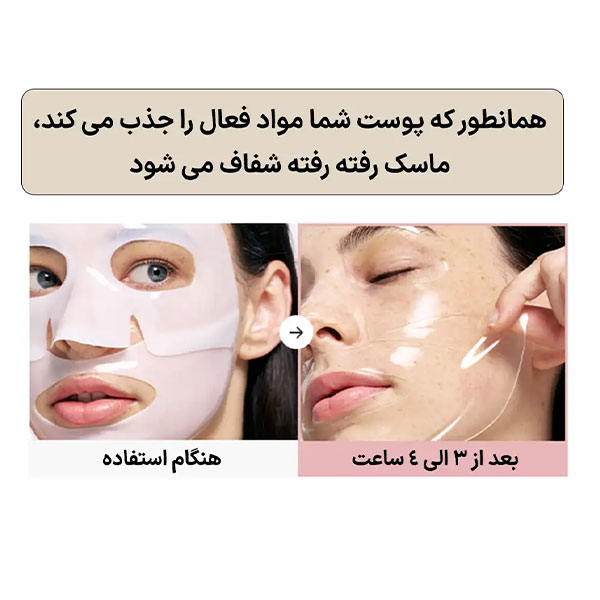 بعد از شست و شوی صورت و روتین شبانه ماسک را به طور یکنواخت روی صورت بگذارید و اجازه دهید تا صبح بماند. سپس ماسک را برداشته و پوست را با آب بشویید.