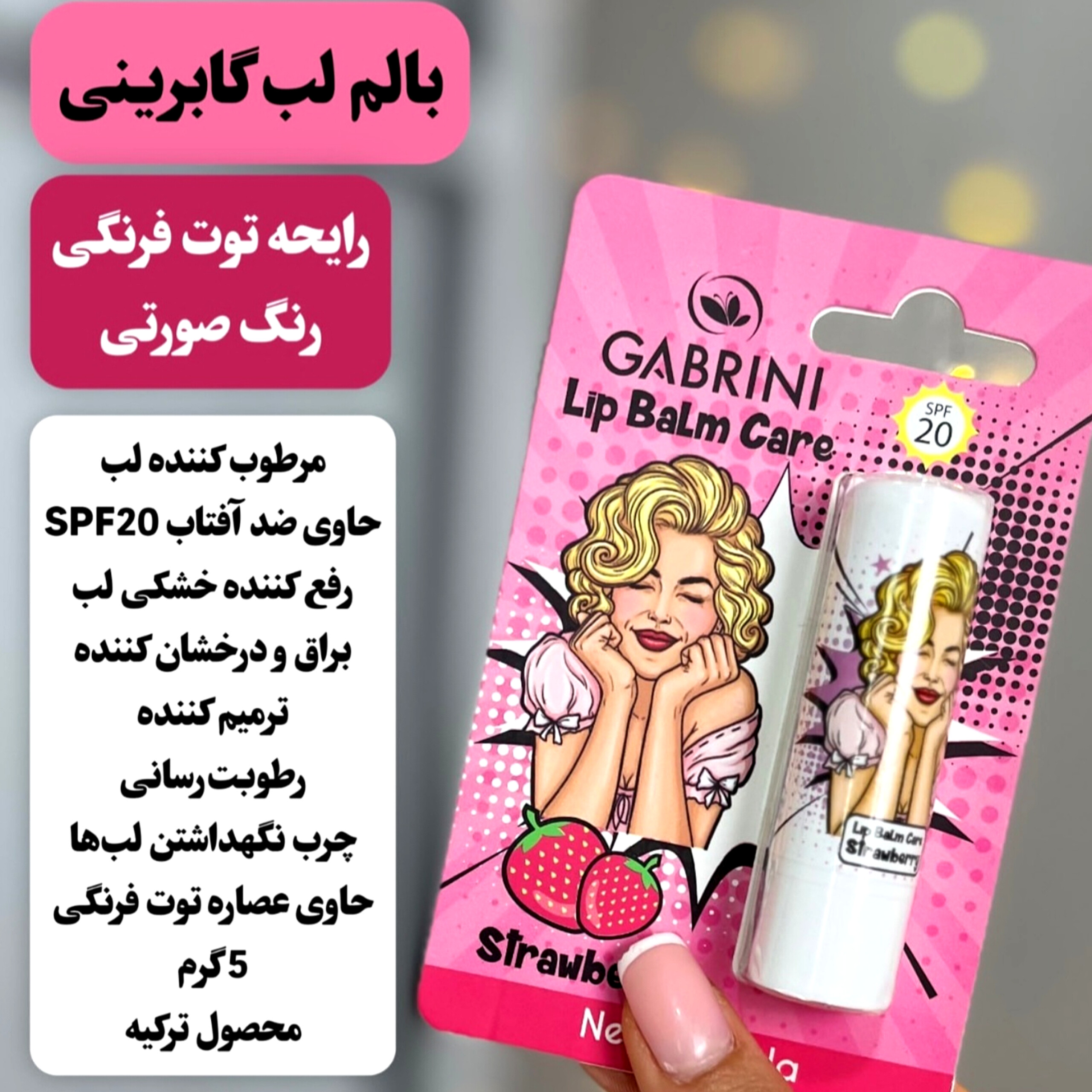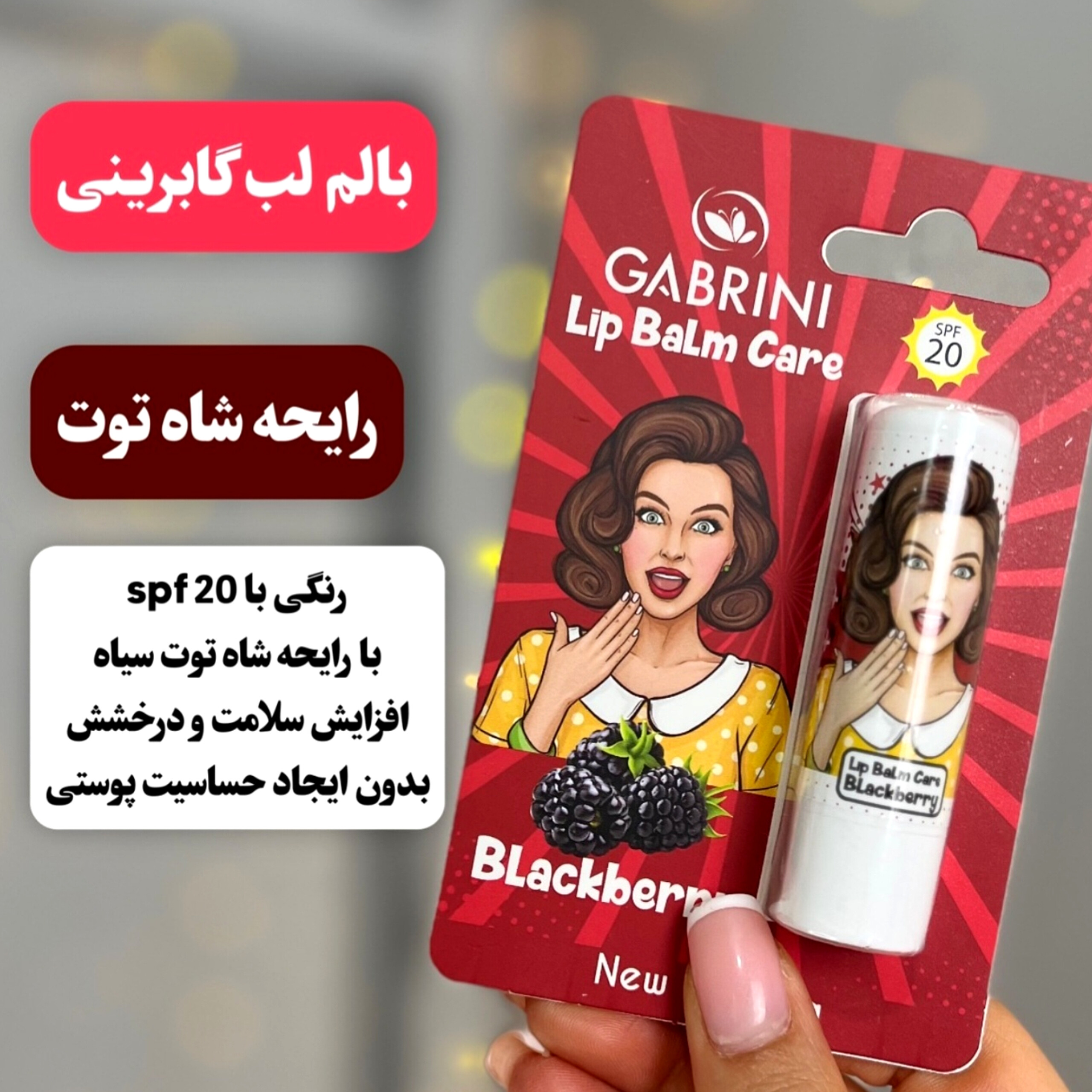 بالم لب گابرینی همچنین دارایspf25هست که ازپوست لب دربرابراشعه ی خورشیدمحافظت میکند.