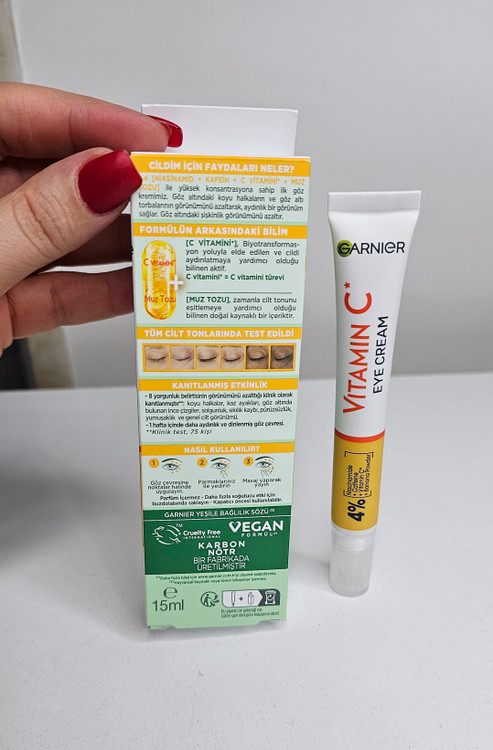 دورچشم ویتامین سی گارنیرحاوی پودرموروکافئینه برای روشن شدن دورچشم،سرشارازویتامین سی ونیاسینامید،کاهش پف وسیاهی دورچشم ورفع خستگی دورچشم✅️