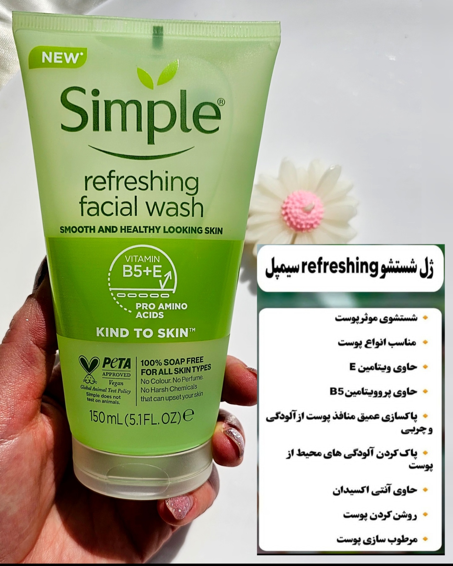 ژل شستشوسیمپل مدل رفرشینگ مناسب انواع پوست،حاوی ویتامینE،ویتامینb5،پاک کردن آلودگیهای محیط ازپوست،حاوی آنتی اکسیدان،روشن وشفاف کننده